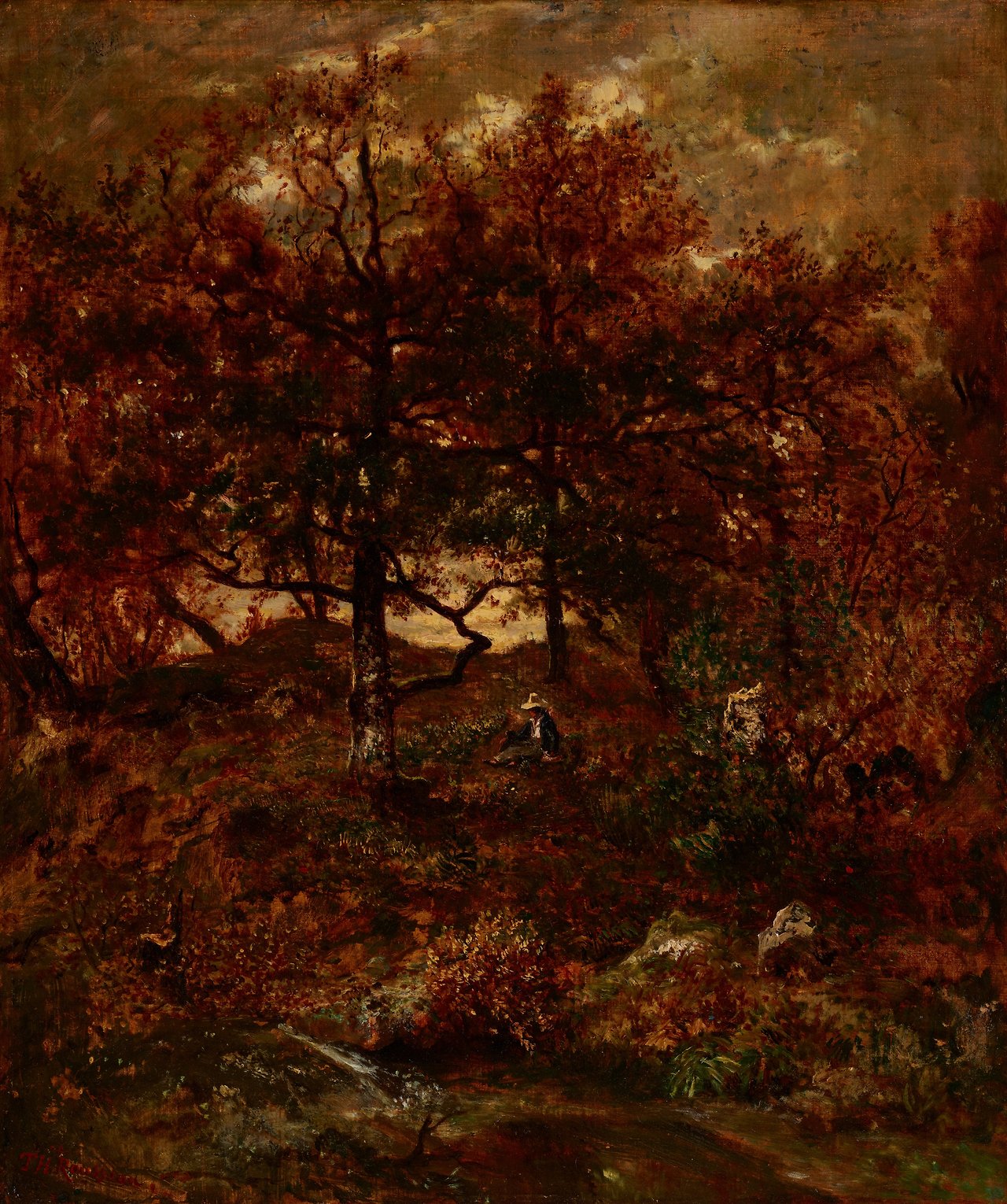 여러 지역을 방랑하던 루소는 1847년 파리에서 50km에 위치한 퐁텐블로 숲 어귀 바르비종에 정착한다. 중세말부터 왕족과 귀족들의 사냥터였던 퐁텐블로는 원시의 자연이 잘 보존되어 있었다. 루소는 아침부터 황혼까지 숲 속을 거닐며 구석구석에서 영감을 받았다. <퐁텐블로 숲의 가을>은 ‘나무의 목소리’를 들었다는 화가의 모습을 담아낸 것처럼 보인다.