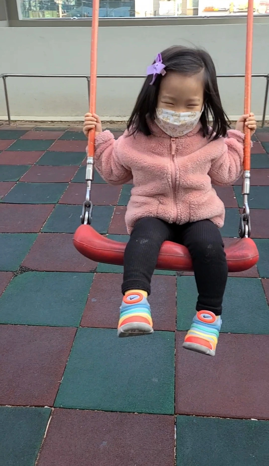마지막으로 놀이터에서 놀았을 때는 겁이 나거나 몸이 따라주지 않아 쉽게 타지 못했던 것들도 용기내 도전해보는 28개월. 제일 좋아하는 그네로 달려가 그네줄을 꼭 잡은채 자기를 앉히고 "세게" 밀어달라고 여러번 힘주어 강조한다. 옆에서 높이, 더 높이 하늘로 솟구치는 언니를 보며 아이의 마음은 이미 하늘을 날고 있는 게 느껴진다. 등을 밀자 그네줄을 꼭 잡은 작은 손끝에 잔뜩 힘이 들어가 연노랑색으로 바뀐다. 몸이 붕 뜨는 순간, 세상을 다 가진 듯이 까르르 웃는 아이를 보는 내게도 봄바람을 타고 연노랑빛 진한 행복이 전해진다.