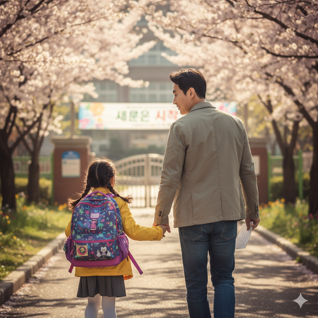 2021년 3월 2일. 시작이라는 설렘으로 가득한 어린 소녀가 자신의 몸보다 커다란 책가방을 메고, 수 많은 시간을 지나 자신의 곁에 서 있는 소년과 함께, 손을 꼬옥 잡은 채 교문을 향해 총총 걷고 있다. 시작이란 항상 끝이 있음을 알게되고, 새로움이란 이제는 익숙함이 되어버린, 세월이란 바람에 부식되어 버린 소년의 새로움에 대한 설렘이, 어린 소녀의 손에서 전달되어 오자 소년은 사뭇 낯설었다.