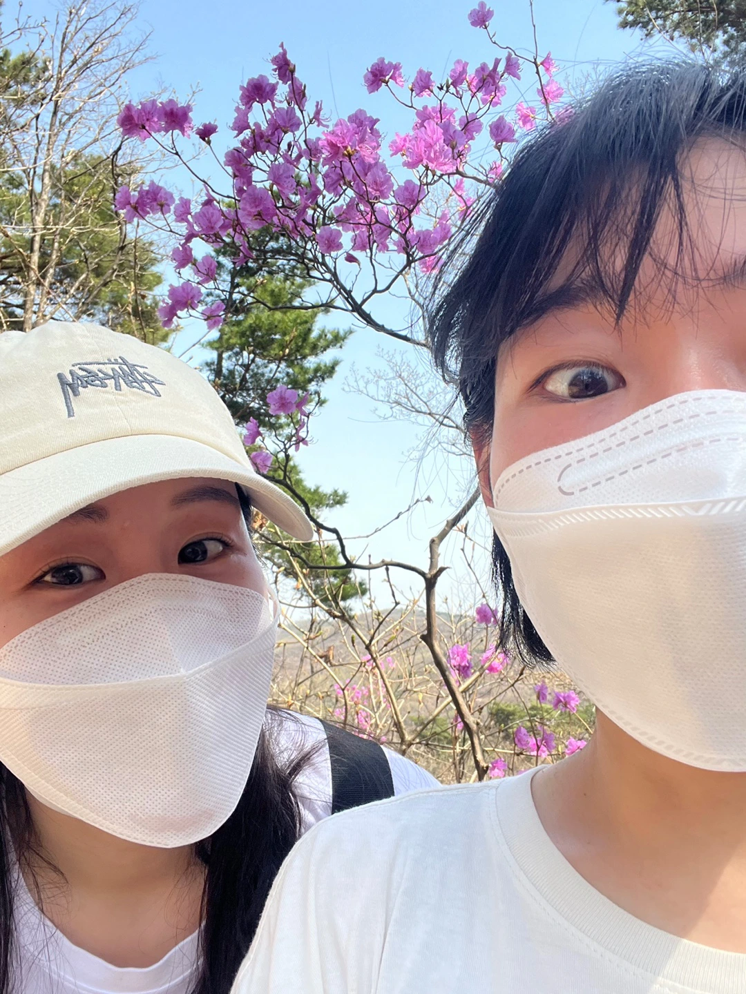 등산하는데 진달래가 또 예쁜 거다.. 휴 열받아. 이러니까 커플들이 다 나오지. 근데 예쁘긴 하다. 우리도 찍을까?ㅎ 해서 열받아하면서 또 찍었다.
