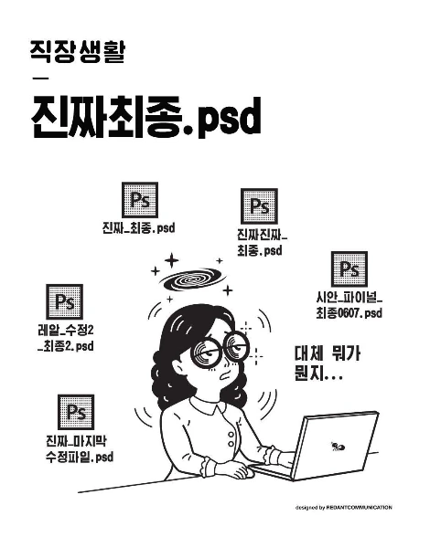 띵동. 사내 메신저가 왔다. 팀장님이 보낸 피드백 확인하라는 내용이다. 리뷰받은 ppt 파일을 열어보니 피드백 내용이 담긴 빨간 딱지가 여기저기 붙어있다. 반영해서 수정한다. 다시 수정한 버전을 팀장님한테 보낸다. 그의 피드백을 기다린다. 이번엔 노랑 딱지가 붙은 파일이 온다.. 최소 이 과정을 5번 정도 거치며 빨주노초파 딱지를 모두 받아보고 나서야 하나의 작업물을 겨우 완성해서 내보낸다. 후압.