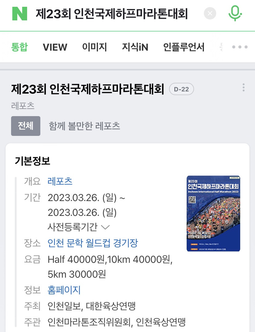제 23회 인천국제하프마라톤대회 10Km 신청완료