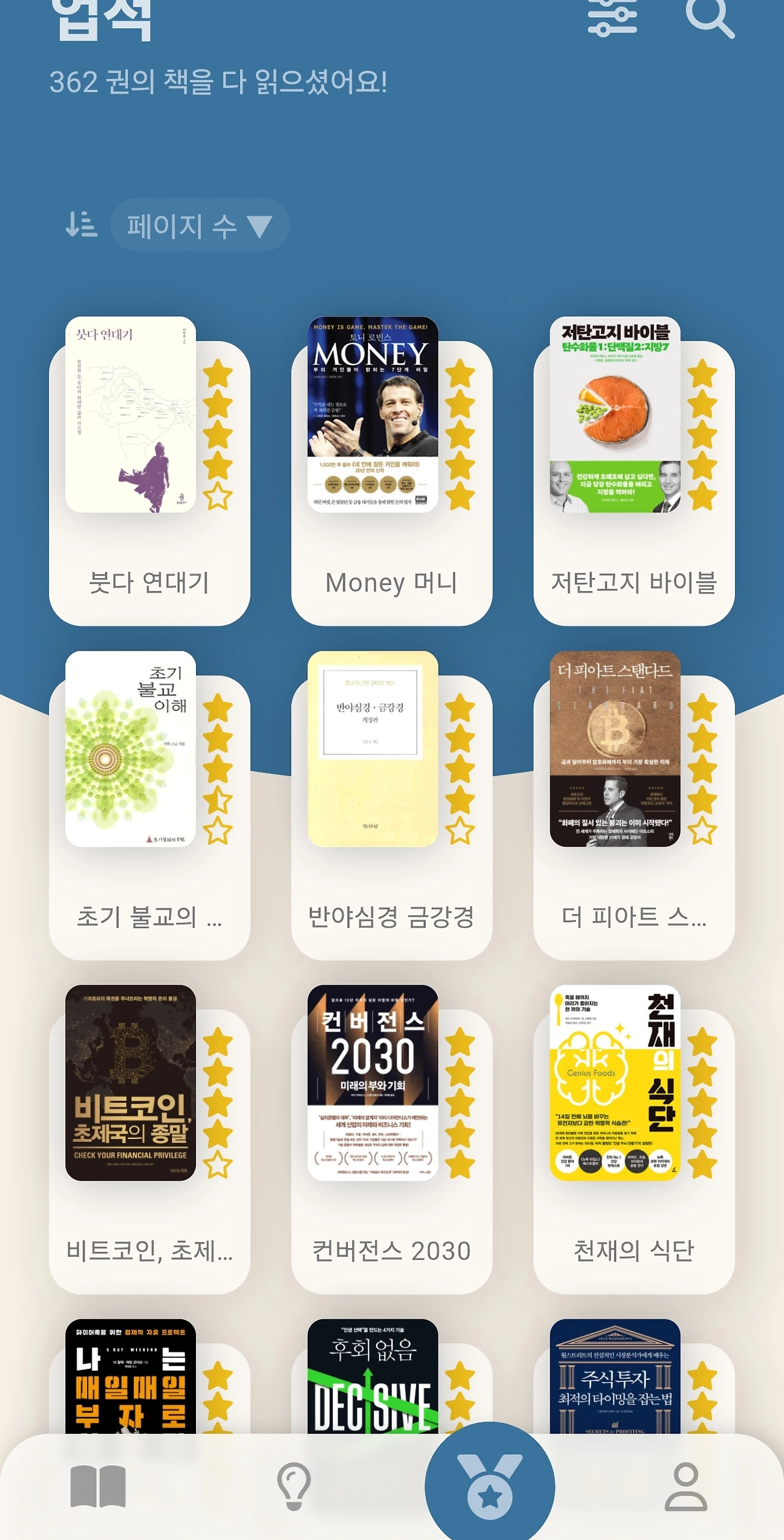 이렇게 독서습관이 완전히 익어서 이젠 1년에 책을 100권 이상 정독하네요. 한때 명상과 여행이 삶의 큰 부분이었는데 지금은 책이 그렇게 되었네요. 책이 삶의 모든 것은 아니지만 죽기전까지 볼 책들이 함께한다는 사실이 즐겁습니다. ^^