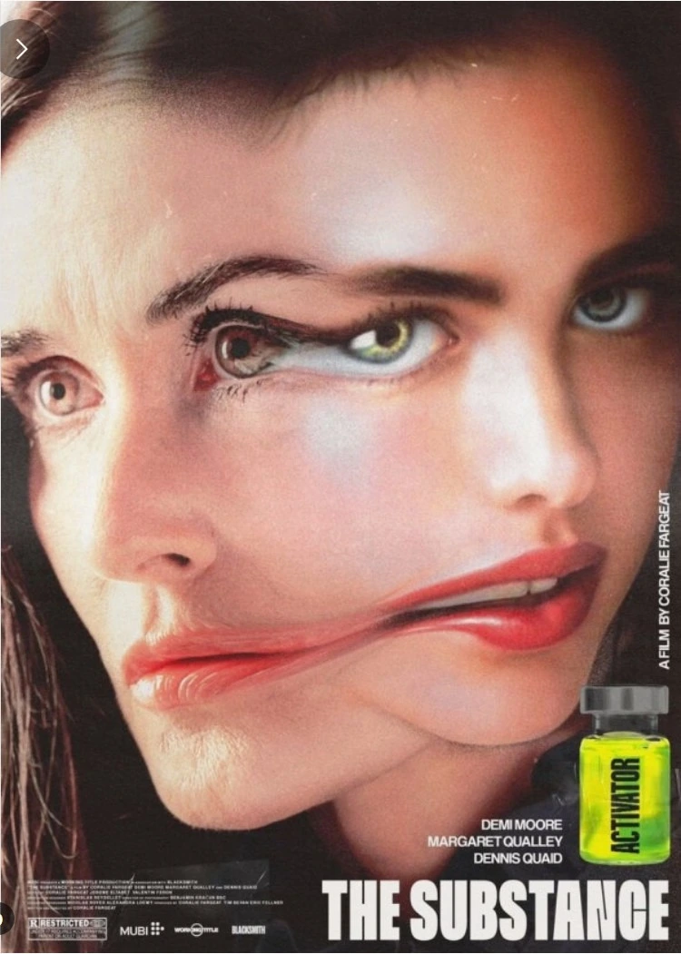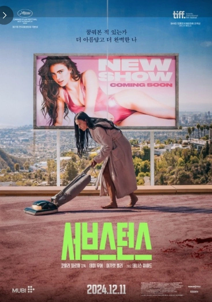 이 서브스턴스라는 영화는 이런 노병사에 더불어 물질적 아름다움에의 집착, 인기에 대한 집착 등을 다소 과한 상징의 영상으로 담아낸다. 그리고 영화 후반에서 나온다. 개인적으로 영화 파묘보다 몇 배는 더하다는 필자의 생각에 많은 분들이 동의하지 않을까 싶다.