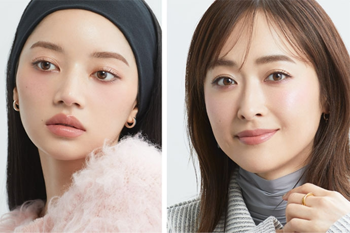 5. 메이크업은 깔끔하고 얇은 피부표현, 볼터치를 광대 위로, 입술은 자연스러운 누드 톤이 대세로 보인다.