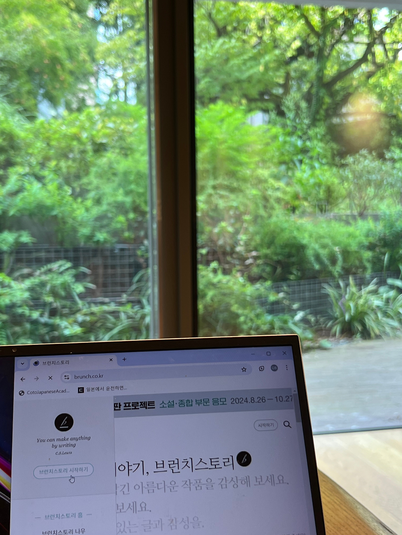브런치 작가를 신청한 장소는 도쿄의 '무라카미 하루키' 도서관이었다. 관광지에서 꽤나 먼 와세다 대학에 있는 기념 도서관. 웅장한 돔 형태의 높은 서고에 소개된 세계의 문학서들을 마주하고 왼쪽으로 코너를 돌아가면 연도별로 전시된 그의 작품이 나즈막히 깔려있다. 성실한 작가의 시간이 물성으로 다가왔다. 나는 항상 언젠가 글을 쓰겠다는 생각을 하고 있었다. 언젠가. 작가로서의 하루키의 긴 여정을 보여주는 서가는 친숙한 모양새를 하고 있었지만, 그 성실함이 나를 살짝 압도했다. 내가 저런 작가가 될 수 있을까. 무거운 마음을 좀 내려놓고자 계단을 따라 카페로 내려가 커피를 한잔 주문하고 노트북을 펴 들었다. 다시 시작하겠다 결심했다. 오랜 시간이 지난 지금와서 보니 '대 하루키 선생' 같지만 30대의 하루키도 어느 날 작가가 되겠다며 첫 원고를 써내려 갔다. 그게 한 30년 전쯤일까 떠올리는 34세 라희, 조용히 노트북을 열고 다시 글쓰기를 두드려보기로 했다.