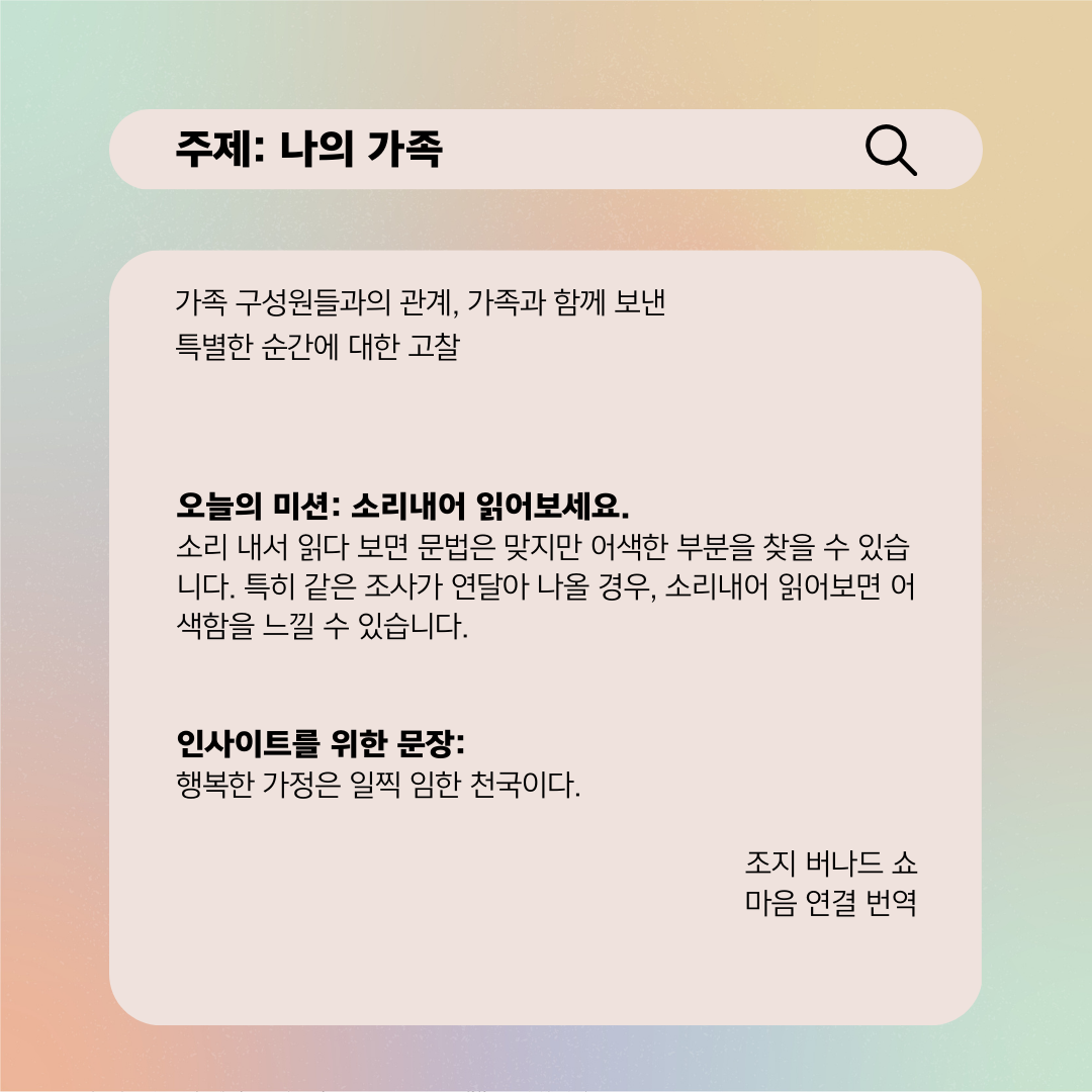 그런데 이제는 알아요. 내 가족의 말뚝을 어디에 박고 울타리를 쳐야 할지도, 내가 누구 옆에 있어야 하는지도 잘 알고 있어요. 내가 행복한 만큼 우리 가족이 행복했으면 좋겠어요.