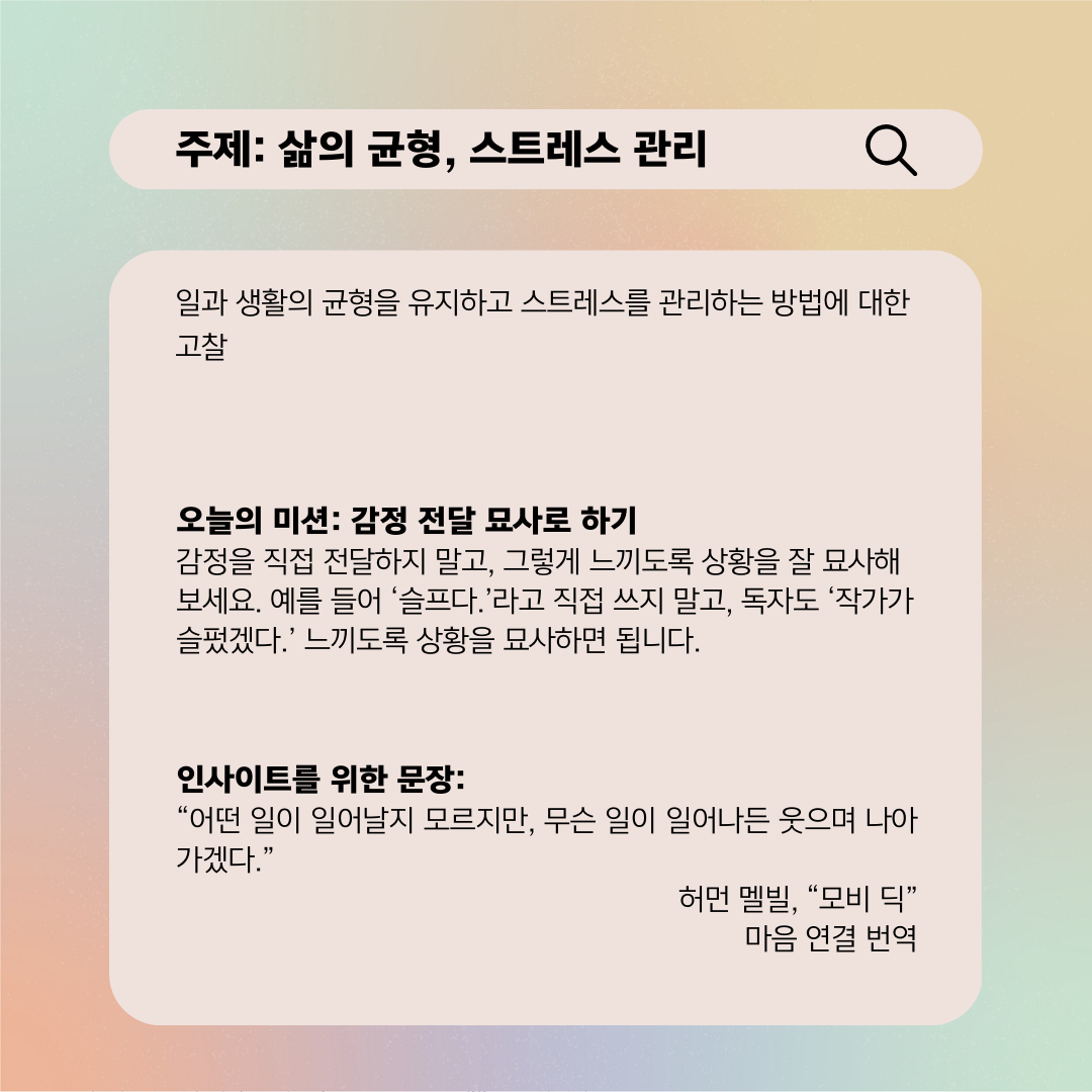 램 @nousandmind 마음번역24365 스티커를 붙이고 쉬지 않고 인출해야 하는 ATM이 부럽기는 또 처음이다. 학창 시절 엄마에게 일어나자마자 듣는 칭찬은 '우리 큰딸은 알아서 잘 일어나'라는 잠자리 습관이었다. 그렇다고 일찍 자는 아이도 아니었다. 2시까지 라디오를 듣고 잤으니 늦게 잠들고 하루에 5시간 정도 자는 수면습관은 10대 때 생긴 듯하다.