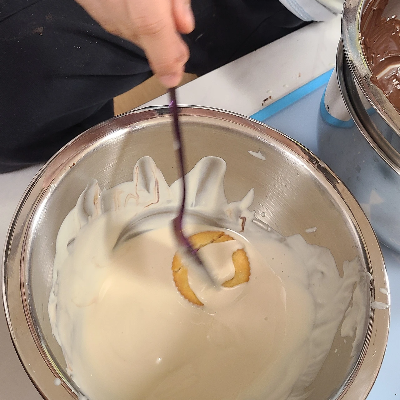 금이 간 쿠키도 과감하게 투하했어요. 초콜릿 옷을 입으니 감쪽같아요.
