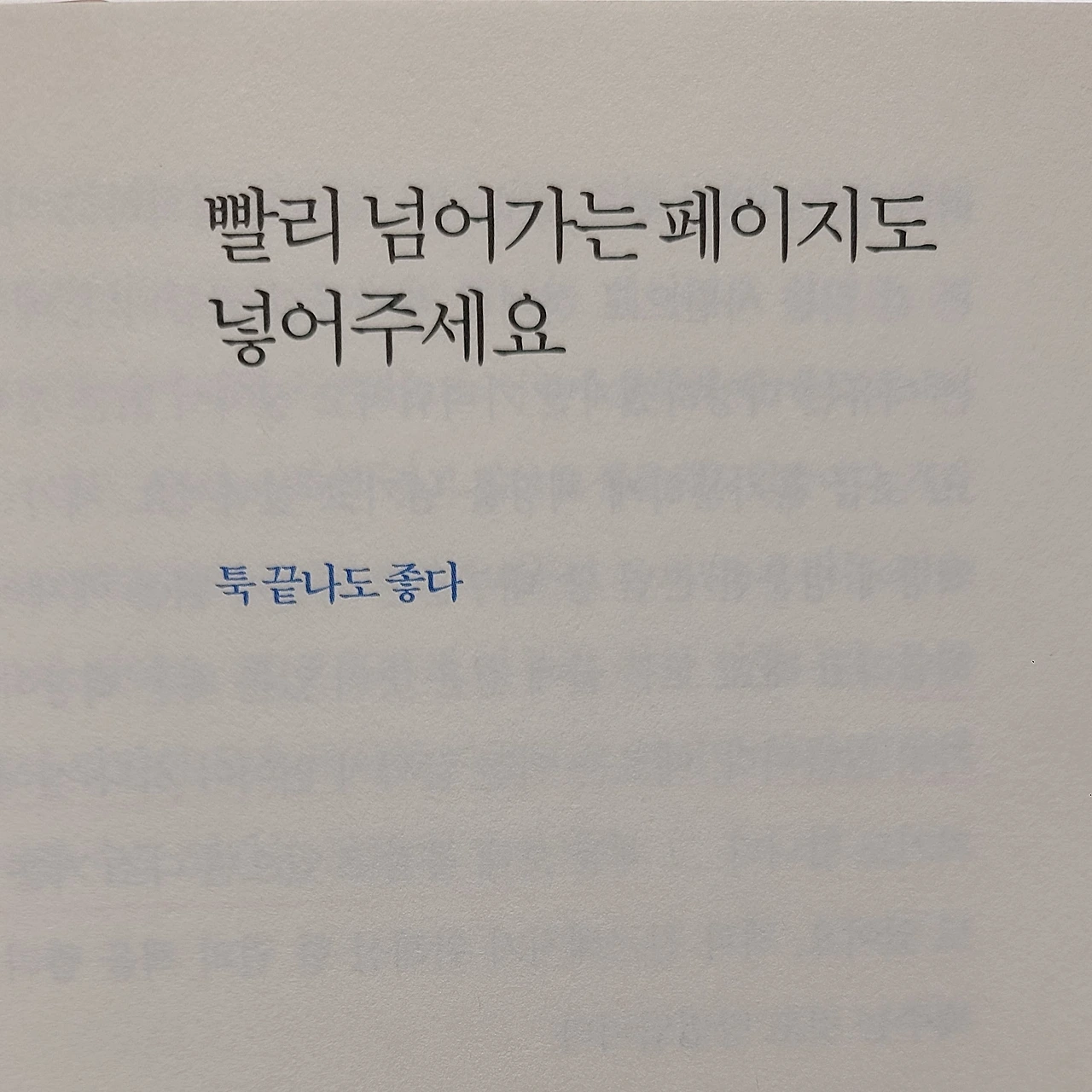 - 이유미의 일기를 에세이로 바꾸는 법 p75. 빨리 넘어가는 페이지도 넣어주세요(툭 끝나도 좋다)