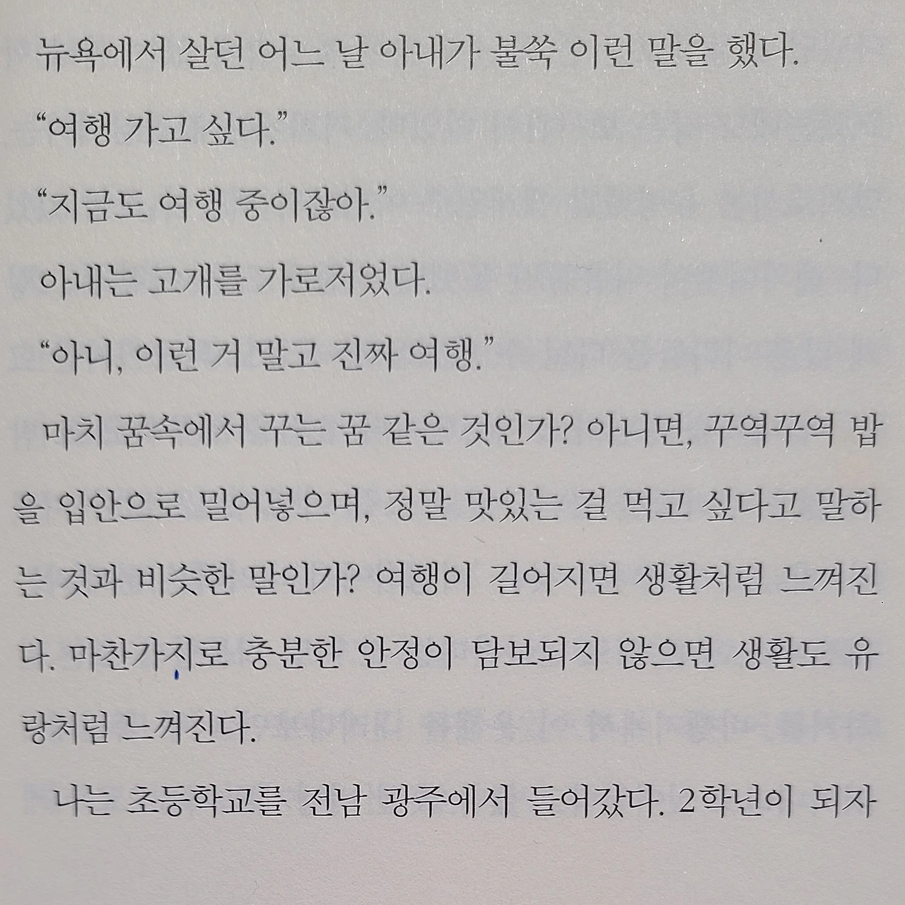 여행은 우리를 오직 현재에만 머물게 하고, 일상의 근심과 후회, 미련으로부터 해방시킨다.