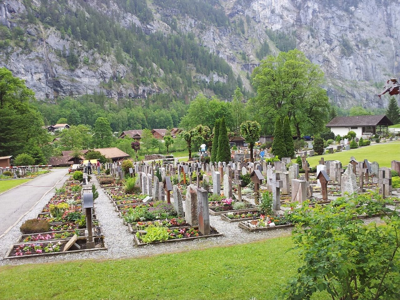 융프라우를 가기 전에 라우텐브루넨을 들르기 위해 A열차를 탔다. 한 시간 동안 돌아본 라우텐브루넨은 흐린 날의 영향을 전혀 받지 않은 듯 너무나 선명한 곳이었다. 눈이 녹아 바위틈에서 쏟아져 나오는 폭포, 유럽 마을에 가면 꼭 있는 그런 예쁜 무덤들, 와인과 초콜릿 상점, 풀밭에서 발견한 노란 달팽이 모든 게 아름답고 여유로웠다. 스위스만의 호사를 즐기며 더 머무르고 싶었지만 융프라우를 포기할 수 없기에 톱니기차에 몸을 실었다.