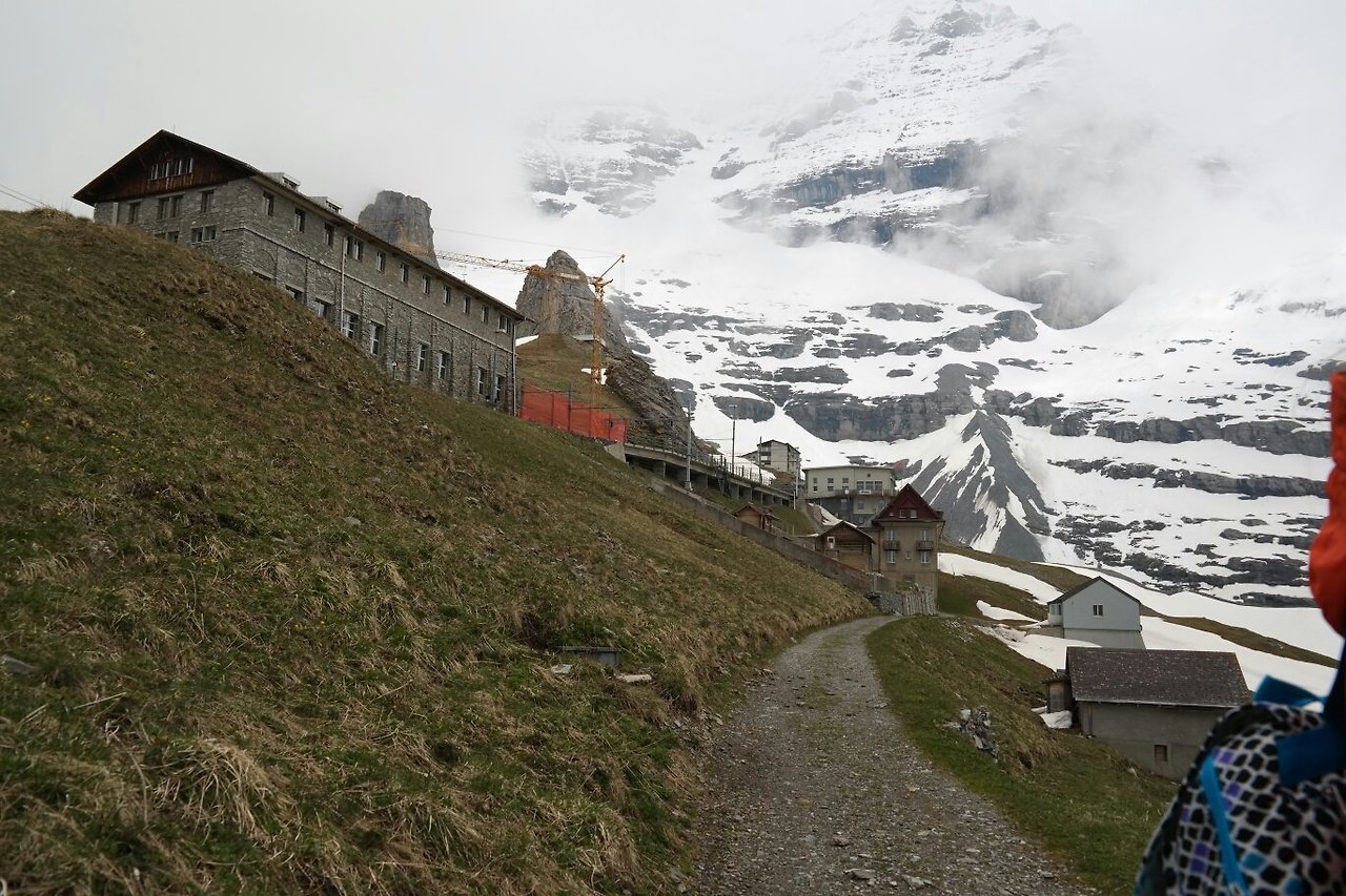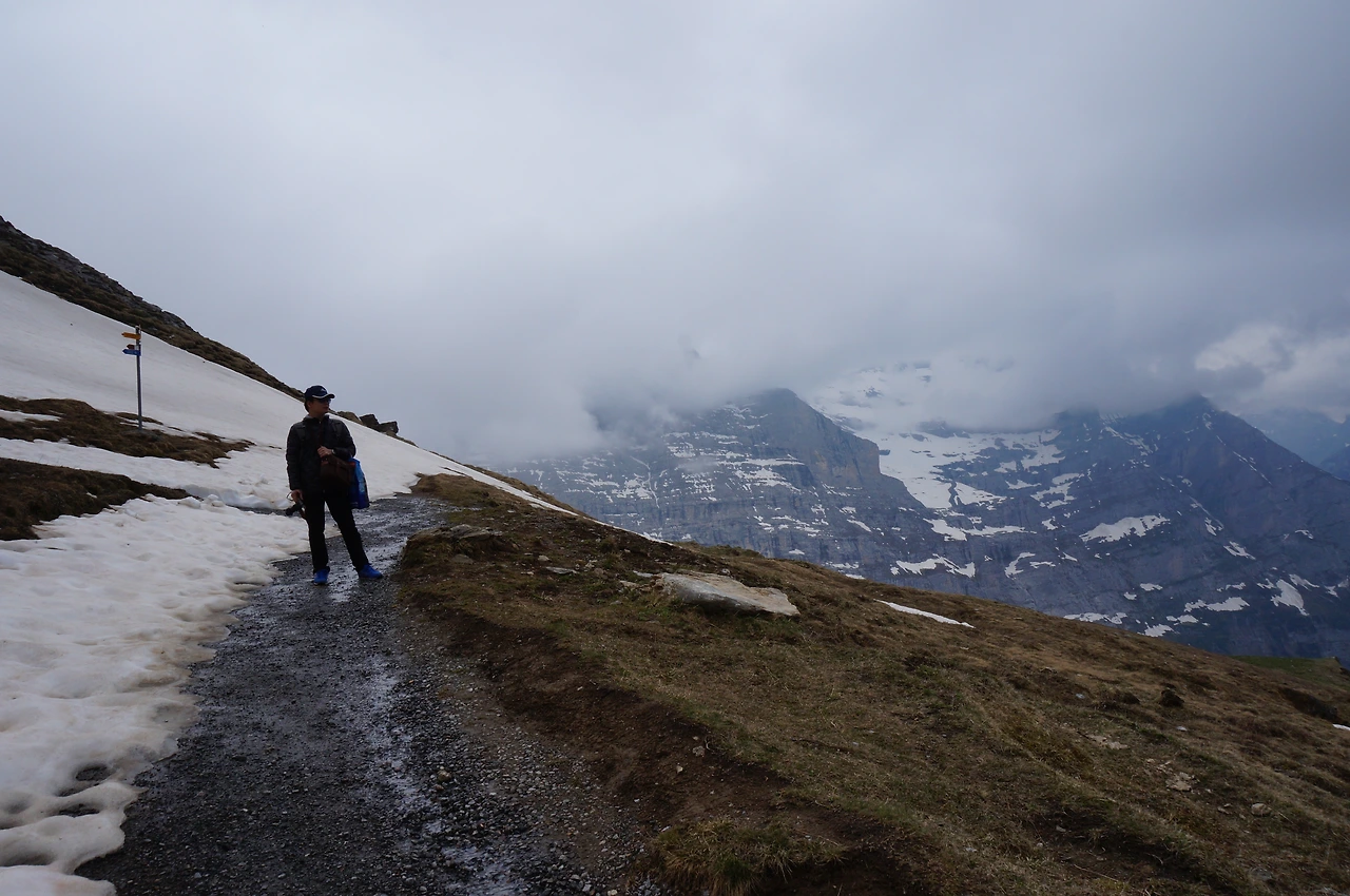 차장님이 주는 융프라우 초콜릿 먹고 잠든 신랑 옆에서 여행책을 보다, 아이거 글래쳐에서 내리면 글라이네 샤이덱까지 해발 300m의 하이킹 코스가 있다는 글을 읽었다. 마침 다음 정거장이어서 신랑을 깨워 일단 내렸는데, 많이 내릴 거라는 예상과는 달리 기차가 떠난 역에는 우리외에는 없었다. 날이 많이 흐리고 하늘의 먹구름이 점점 많아지고 둘 뿐이어서 걱정됐지만 돌아갈 수 없으니 일단 가기로 했다.
