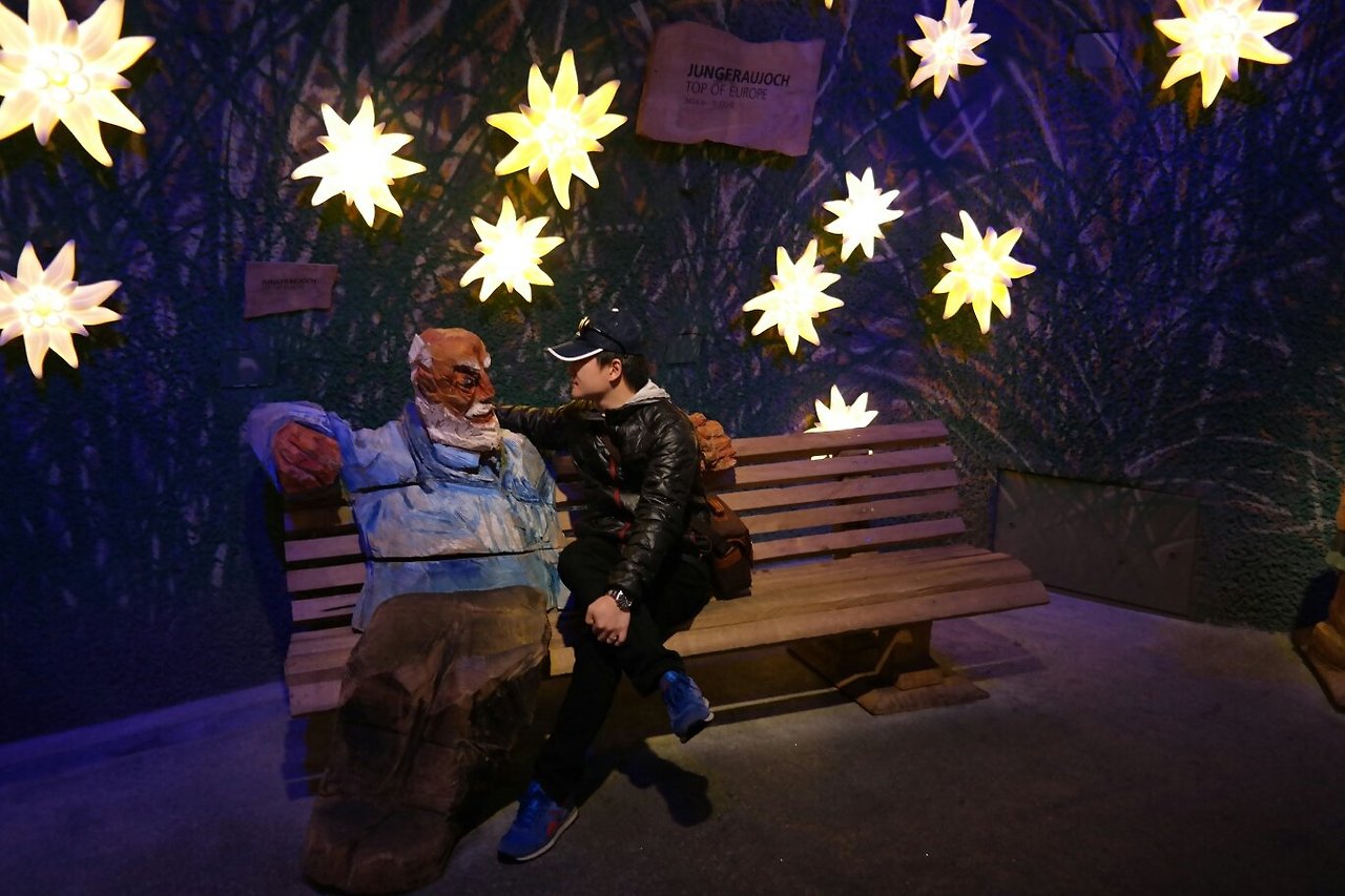 더 이상 눈을 맞기에는 무리가 있어서 실외보다 더 추운 실내로 들어왔다. 융프라우 박물관을 구경하고 또 신나게 사진 찍다가 약효가 떨어지는지 두통이 몰려와 끝까지 못 보고 중간에 나와 내려가는 기차를 탔다. 아직 5알의 비아그라가 남았지만 더 먹고 융프라우를 즐기기엔 눈이 너무 많이 온다.