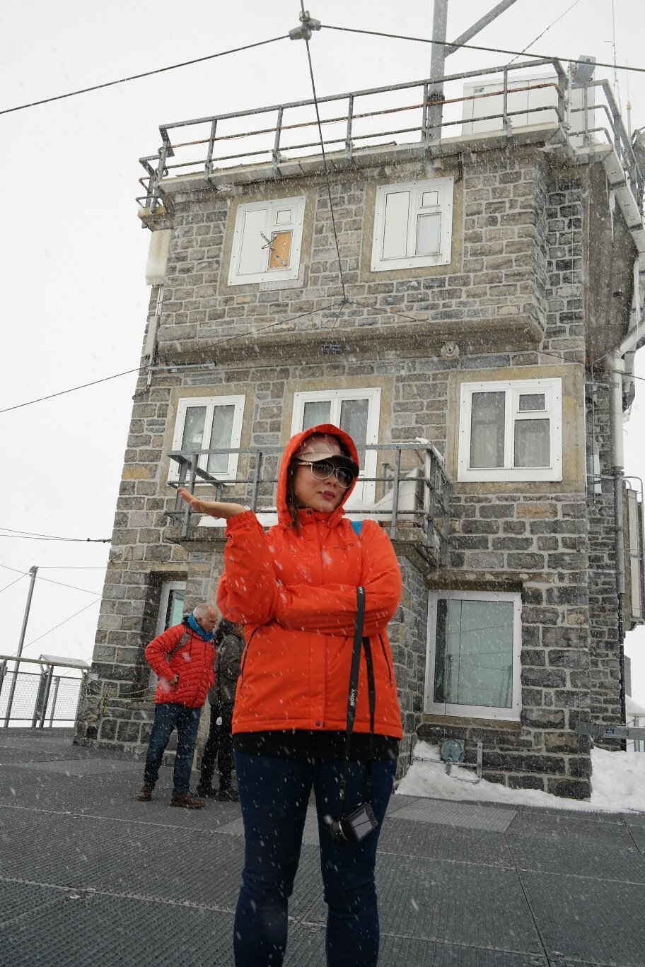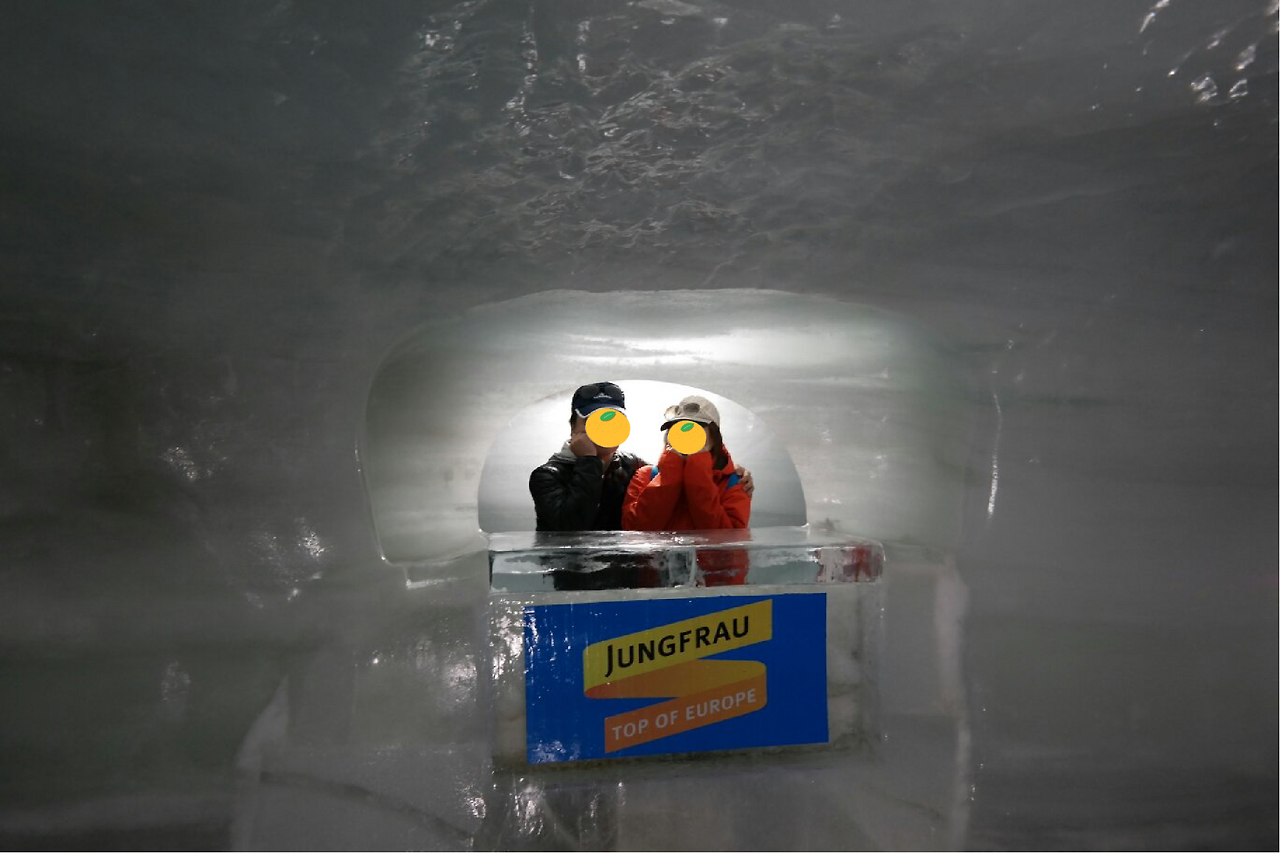 이런, 오늘 날씨가 많이 흐리더니 문을 열고 나가자 눈이 온다. 아니, 눈보라가 몰아친다. 점점 거세지는 눈에 어디까지가 산이고, 어디부터가 하늘인지 구분도 안된다. 시력보호를 위해 챙겨 온 선글라스를 소품 삼아 007 제임스본드와 본드걸 빙의돼서 열심히 사진을 찍었다. 맑은 날의 융프라우는 정말 예쁘다는데 많이 아쉽다. 비아그라까지 처방받아 온 곳인데 이렇게 가야 하다니.많이 아쉬웠지만 맑은 하늘의 융프라우는 3대가 덕을 쌓아야 볼 수 있다니 후손을 위해 덕 좀 쌓아야겠다.