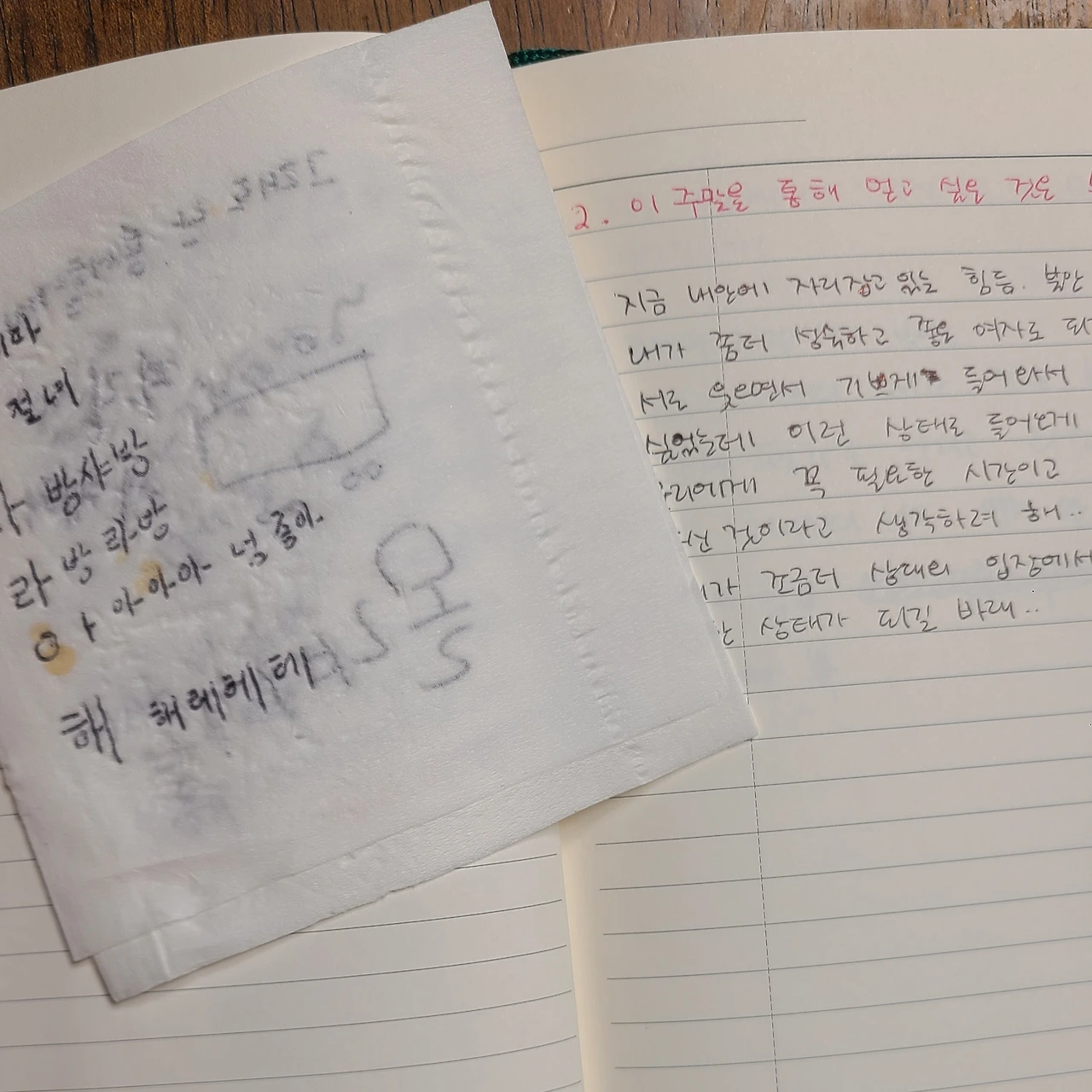 소중한 노트를 다시 보려니 오글거려 덮었다. 휴지로 전달한 남자의 마음. 니맘 내맘