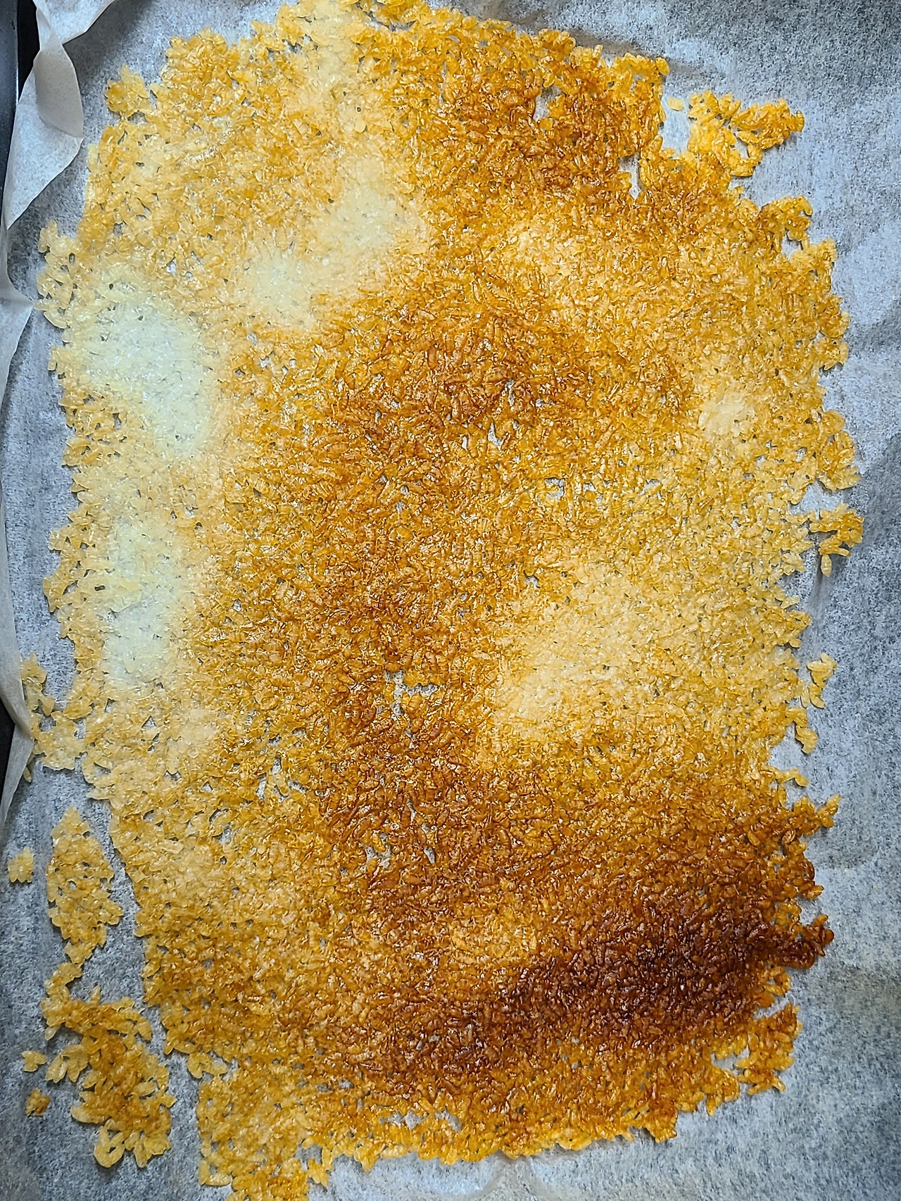 그렇게 분리된 누룽지를 전자레인지 용기에 올립니다. 그리고 5분 돌려준 후, 상태를 봐가며 추가로 더 돌려줍니다. 저는 오븐 겸용 전자레인지로 좀 약한 편이라 10분을 돌려주었습니다. 전자레인지 돌릴 때 종이포일 같이 돌리면 안 됩니다.
