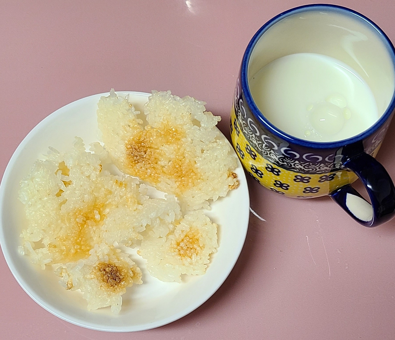 바삭함과 쫄깃함이 함께 있는 누룽지. 겉바속촉 그 이상의 맛을 느낄 수 있습니다. 한 입 먹어보면 '뭐야 평범하네'할 수도 있어요. 그래서 준비했습니다, 우유 한잔! 이렇게 먹으면 하루 종일 전자레인지를 돌리는 나를 만날 수 있습니다.