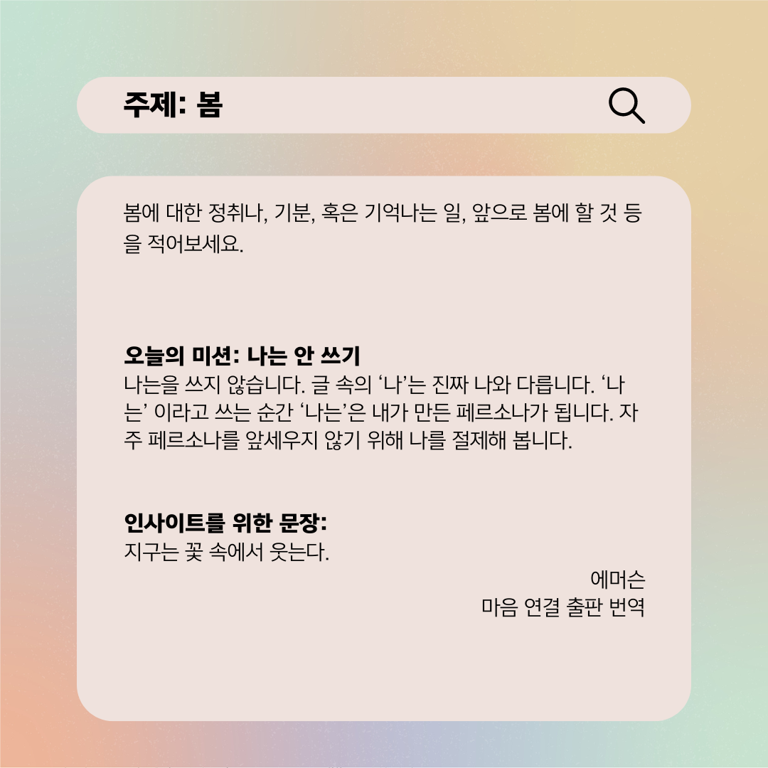 나는 누구인가를 매일 고민하며 성숙한 어른이 되길 바랍니다. 쓰고 읽고 사랑하며 살아가는 햇살같은 사람입니다. 매주 화요일, 금요일 발행합니다. (공휴일은 쉬어요~)