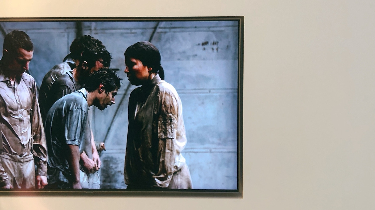 영상 속 백인들은 물감을 뒤덮고 있는 사람들을 향해 물대포를 쏘기 시작합니다. “권력”을 상징하는 제복을 착용한 두 백인 남성은 사람들의 저항을 감지하려는 듯 굳건하게 서 있습니다. (길거리 시위와 물대포 진압을 경험한 필자에게 물대포의 폭력성은 남다르게 다가옵니다.) ‘더러운 사람들’로 상정되는 이들은 속수무책으로 물줄기들 속에 갇힙니다. 백인들은 물대포를 다 쏘고 난 뒤 후 수세미로 그들의 피부를 닦아내기 시작합니다. 물대포가 미처 다 제거하지 못한 얼룩을 세세하게 다 지워내고자 하는 듯합니다. 얼룩으로 뒤뎦여 있던 사람들은 점점 희어지기 시작합니다. 그러나 차가운 물이 그들의 피부 표면을 거칠게 닦을 때마다 그들의 떨림은 점차 심해집니다. 점점 그들의 등은 굽어가고, 초점은 희미해집니다.