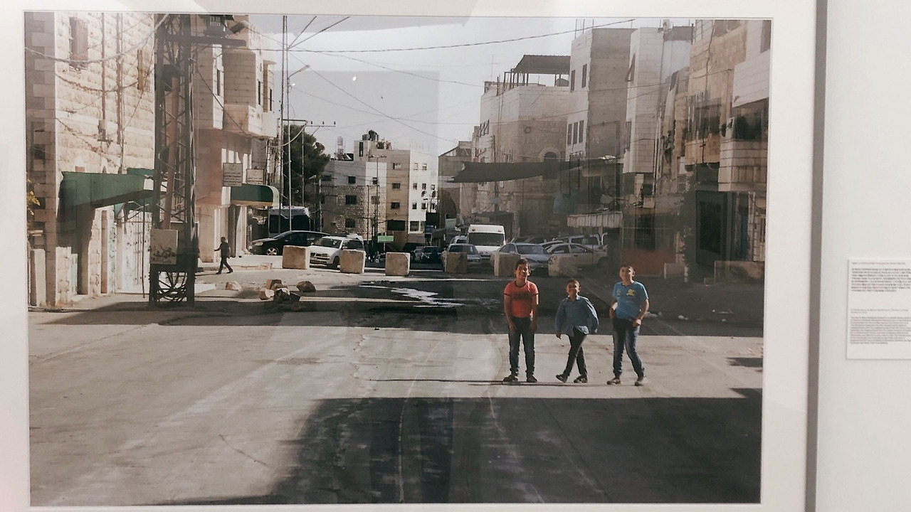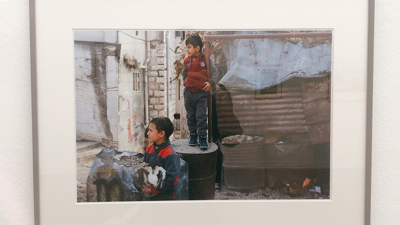<점거> 연작은 이스라엘 식민 정권과 시온주의적 사상을 가진 유대인 정착민들이 팔레스타인 사람들의 주거지를 점거한 이후 마을의 변화상을 보여줍니다. 저는 이 작품이 정말로 마음에 들었습니다. 만약 아무 설명 없이 이 사진들을 마주한다면, 이 작품은 “중동적인” 분위기를 뿜어내는 '감성적인' 사진들로 보일 수 있습니다. 팔레스타인 아이들의 천진한 모습, 거리 곳곳에 새겨진 그림 같은 아랍어와 히브리어, 그리고 사진 전반적으로 ‘중동’을 연상시키는 색감은 마음을 따뜻하게 만드는 일상 사진을 연상케 합니다. 그러나 사진 옆에 기록된 설명을 읽은 뒤 사진을 다시 본다면, 시블리의 사진은 다른 의미로 읽히기 시작합니다.