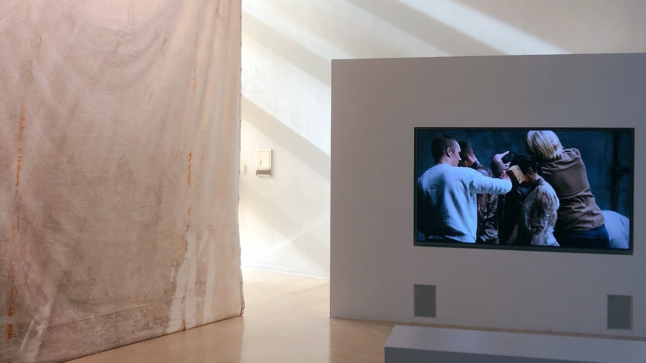 필자 개인에게 가장 충격적인 작품을 고르라고 묻는다면, 저는 길게 생각하지 않고 아델 아비딘의 <청소>를 꼽을 것입니다. 이 작품은 중동을 연상시키는 진흙 색 물감으로 뒤덮여 있는 사람들을 ‘씻기는’ 영상입니다. 그런데 제목에서 알 수 있듯, 이 작품에서 보여주는 “씻어내는 행위”는 단순히 우리의 몸을 씻는 의미가 아닙니다. 그것은 지저분한 것을 치우는 “청소”에 가깝습니다.