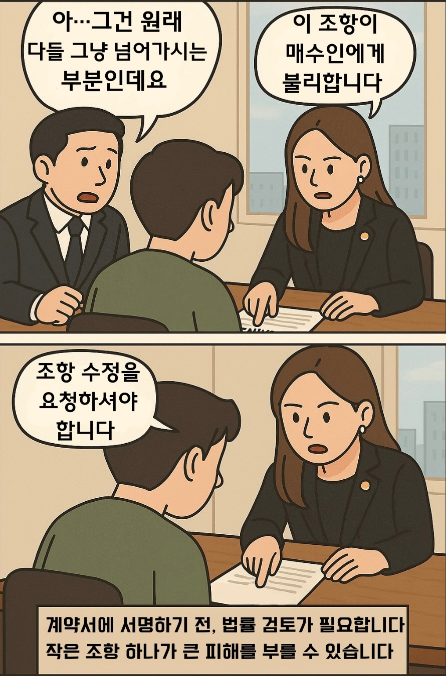 그러나 서명을 하게되면 모든 내용에 동의하는 것이기 때문에 향후 조항 하나로 인하여 큰 손해를 입게되는