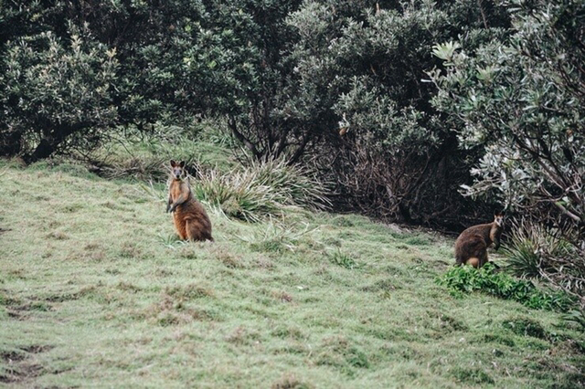 캥거루 풀이 가득한 들판에서 캥거루를 항해 인사하며 화살표를 따라 걷다 보니 장관이 펼쳐진다. 언덕 끝 전망대에서부터 시작되는 바다. 비가 다시 쏟아질 무렵 서로를 바라보는 시선. 이미 넘어갈 곳은 다 넘어갔으니 이곳 마저도 뛰어넘는 건 식은 죽 먹기다.