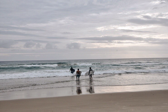우리와 비슷하게 이 근처에서 밤을 지새운 듯 보이는 사람들. 이른 새벽부터 서핑을 즐기러 온 아저씨들. 눈 뜨자마자 세수만 하고 모래 밟으러 나온 나. 운동하는 사람들 사이로 나도 전력질주. 그리고 전력 질주하는 나와 상관없이 산책하는 친구들.