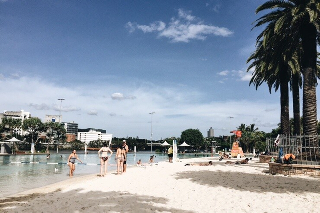 노트북을 등에 업고 사우스뱅크 무료 와이파이 사용하러 나섰다. 하지만 노트북이 녹아내릴 것 같은 뜨거움에 그나마 시원할 것 같은 인공비치 앞에 앉았다. 야자수 그늘에 앉아있으니 조금은 살 것 같다.