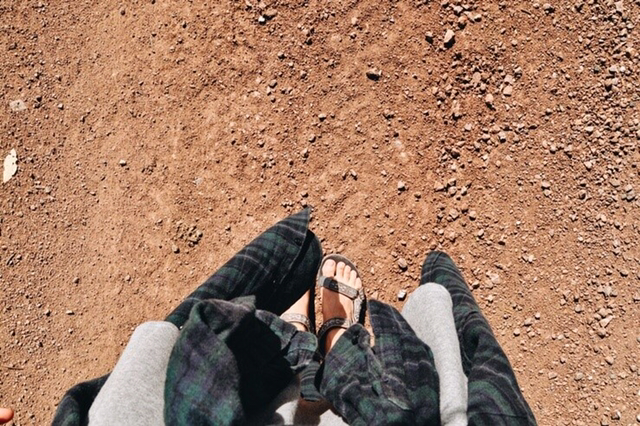 차가 지나간 흔적이 만들어낸 길을 따라 걸어보았다. 뜨거운 태양과 직접적으로 마주할 수밖에 없었던 흙. 걸음을 옮길 때마다 고개를 들고 하늘을 마주치는 것도 잠시, 뜨거운 햇볕을 그대로 맞고 고개가 떨어진다. 내가 왜 걷고 있는 건지 의문조차 마비시켜버린 햇빛.