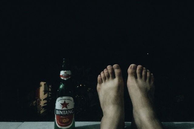 우붓 시내에서 9,950루피아에 지갑도 두둑이 채우고 배도 두둑이 채워 숙소까지 걸어가는 길, 이미 빈땅 레들러를 음료수처럼 마셨지만 가는 길에 슈퍼에서 빈땅 맥주를 또 사들고 방문 앞 테라스에 앉았다.