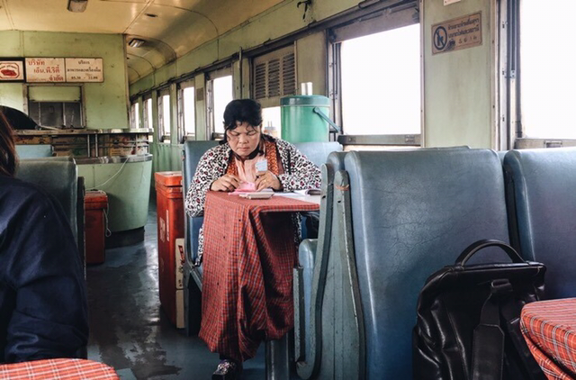 퉁퉁 부은 아침 얼굴채로 식당칸에 앉아 달디 단 커피를 시켜두고 멍하니 흔들림을 감당했다. 핫야이에서 기차가 출발할 때부터 방콕에 닿을 때까지 식당칸과 침대칸을 오가며 바삐 움직이던 아주머니가 오후 열한 시가 되어서야 자리를 잡고 앉는다. 그리고 하루 매출 장부를 쓰기 시작한다.
