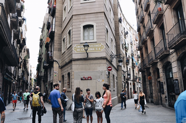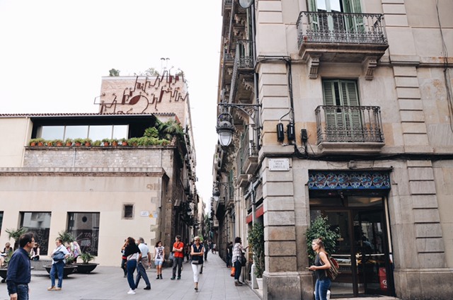 카탈루냐 광장까지 천천히 20분 정도 느긋하게 걷다 보면 뿜어져 나오는 분수를 기점으로 사람들이 다시 늘어난다. 사람들이 가득한 람블라스 거리를 지나쳐서 라발지구가 있는 골목으로 걸어 들어갔다.