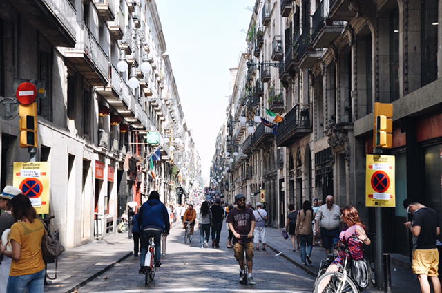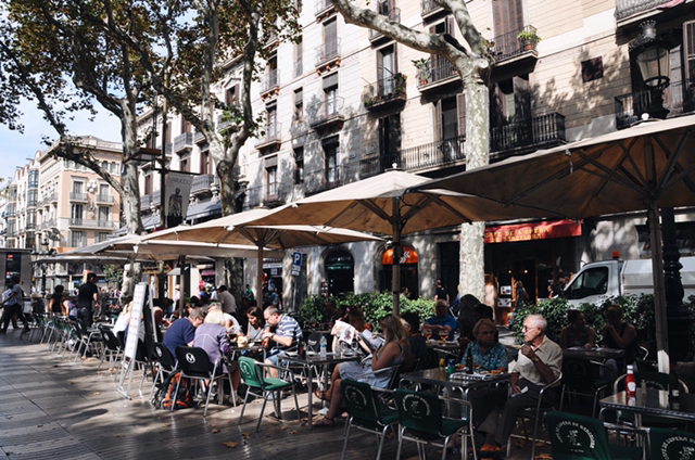 금방 빠져나와 마주친 옅은 길 끝에서부터 자전거를 타고 언덕을 내려오는 많은 사람들 속에 우연찮은 노란 표지판, 노란 티셔츠, 노란 표지판, 노란 바지. 람블라스 거리를 이어가는 노란 나무의 잎과 잘 어울리는 바르셀로나였다.