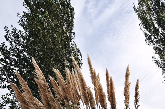 30분 정도 걸었을까, 마을이 끝나고 큰 도로가 나왔다. 그리고 큰 길 맞은편에서 드디어 갈대를 만났다. 엄청 커다랗고 기다란 나무 두 그루와 그 주변에서 흩날리던 금빛 갈대.
