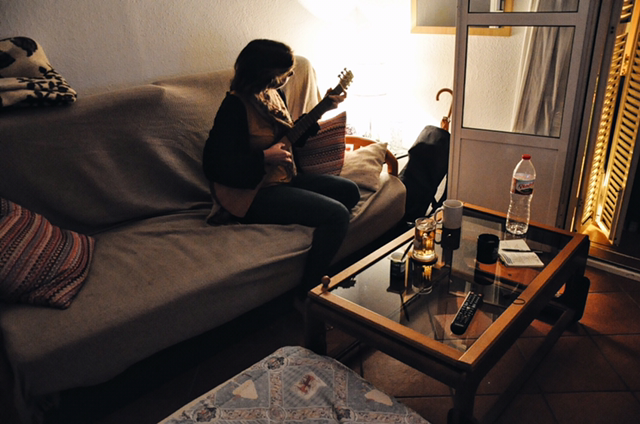 맥주에 흥이 오른 달빛 가득한 밤, 구름 사이로 별도 살짝 보이는 밤, 집으로 돌아와 거실에 모여 따뜻한 차를 마시며 하루를 정리했다. 그녀는 구석에서 기타를 꺼내 흔들흔들 소리를 만들었고, 그는 내가 잘 곳을 만들어주며 이부자리를 재정비했다.