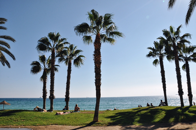 천천히 걸어서 도착한 말라가 해변은 아직도 여름인가 보다.
