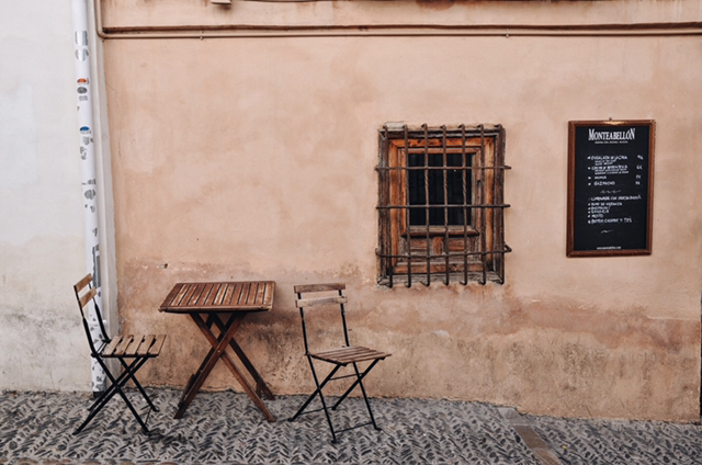 산으로 둘러싸인 그라나다 햇빛을 흡수하고 그새 더 타버린 손에 핸드크림을 잔뜩 바르고 서서히 내려가는 길. 슬슬 해가 내려가고 호스텔에서 짐을 챙겨 근처 카페에 들어가 에스프레소 한 잔 시켜두고 와이파이를 사용했다.