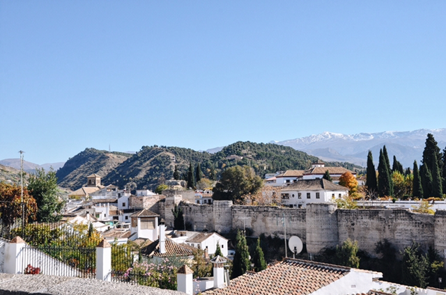 걸터앉으면 어제 앉아있었던 알함브라 궁전과 마주 볼 수 있는 곳. 날씨가 무지하게 좋아서 알함브라 궁전 너머 먼 곳까지 시야가 확보됐다. 아주 뚜렷했던 시에라 네바다 만년설까지.