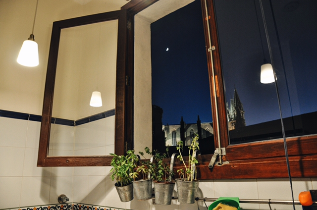 호스텔 부엌 창문에 걸친 성당과 초승달. 지중해를 느꼈던 낮과 다르게 밤에는 딱 가을 날씨다.