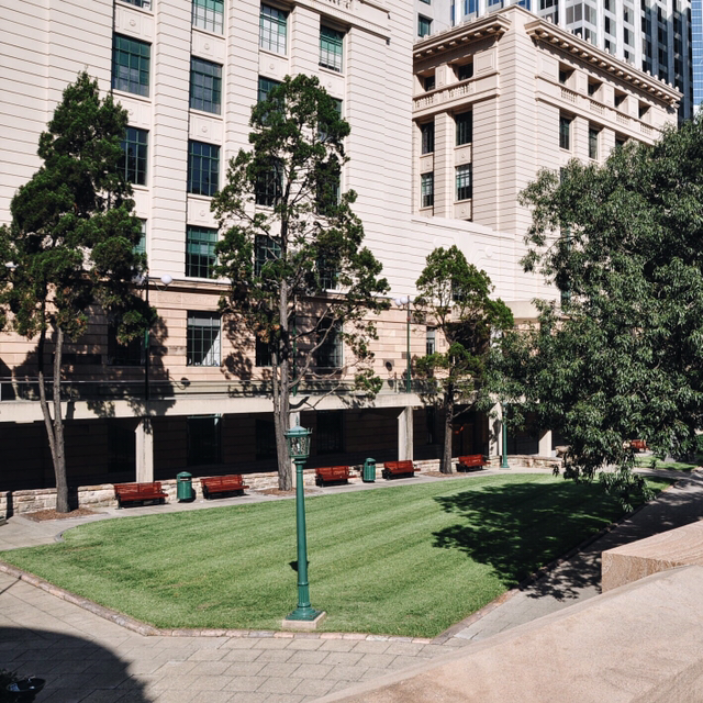 잔뜩 찌푸리며 생각보다 많은 사람들과 함께 브리즈번으로 날았다. 친구가 보내 준 센트럴 스테이션 근처 스타벅스 지도 한 장 만 가지고 가는 길. 인포메이션에 물어물어 시내까지 가는 기차를 탔다. 그리고 와이파이도 없이 센트럴 역에 도착해서 약속 시간이 남아 역전 공원에 자리를 잡고 앉았다. 예상보다 덥지 않고 살짝 습할 뿐이지만 그마저도 서울 한복판에서 친구를 기다리는 기분이라 개의치 않다. 머릿속을 브리즈번의 공기로 바꾸고 지도에 그려진 스타벅스를 찾아 나섰다.