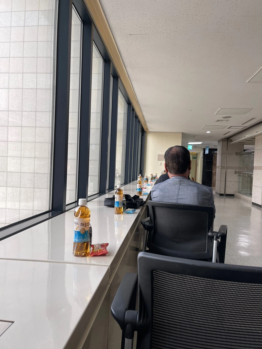 면접 오는 사람들을 복도에 의자만 두고 거기에 앉혀 둔 것이다.