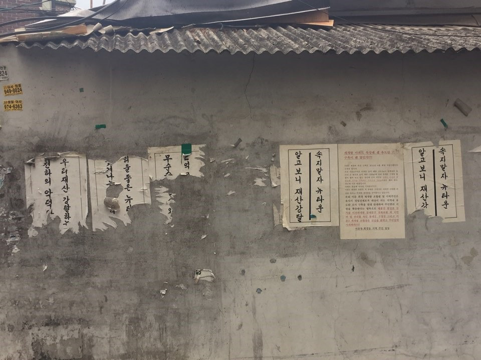벽은 다양한 이야기를 우리에게 들려준다. 우리는 독구말 거리를 벽을 따라 걸으며 뉴타운으로 논쟁했던 수년간의 흔적들을 찾을 수 있었고, 이 거리를 살리기 위한 사람들의 노력, 그리고 언젠가는 이곳을 떠나 다른 곳에서 살게 될지도 모를 어린아이들의 낙서들을 발견할 수 있었다. 차갑고 단절되게 만드는 것이라 생각했던 벽에도 사람들의 다양한 이야기가 담겨 있었다. 우리가 무심코 지나쳤던 벽에 귀를 기울여 본다면 벽은 우리에게 다양한 이야기들로 다가올 것이다.