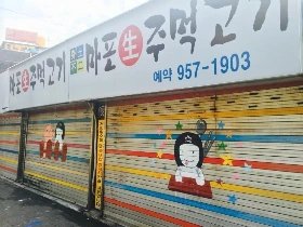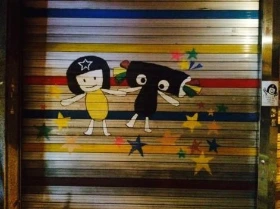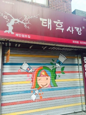 주차장 벽 이외에도 독구말 거리의 곳곳의 가게의 셔터엔 가게의 특색을 보여주는 다양한 별별이를 만나볼 수 있다.