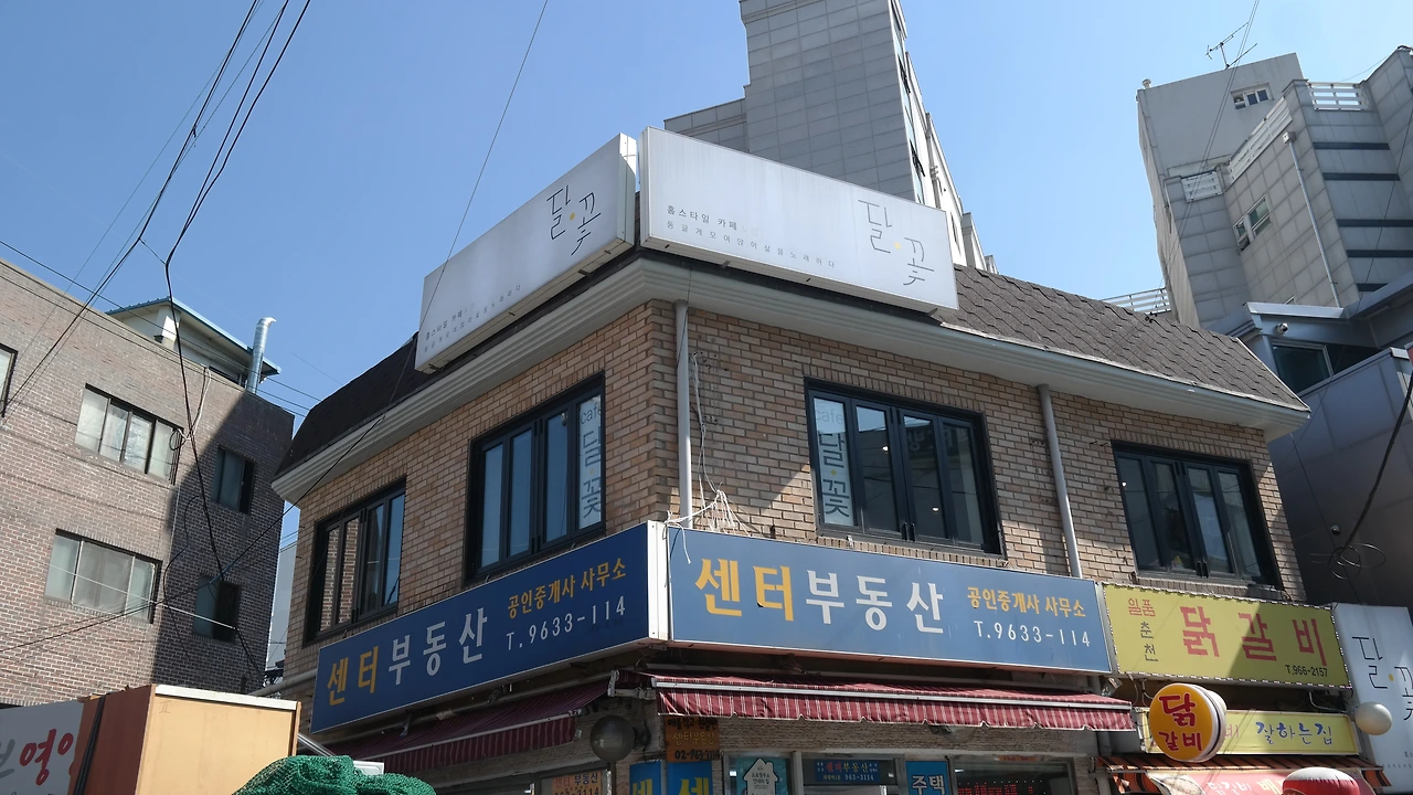 카페 달꽃은 2017년도 6월, 큰길에서 조금 떨어진 조금은 구석진 위치에 있는 부동산 2층에 문을 열었습니다. 가게를 알아볼 때 지하도 있었지만, 사장님은 2층이 좋으셨다고 합니다. 2층의 큰 창문으로는 골목을 지나는 사람들, 빨간 벽돌의 주택도 보입니다.