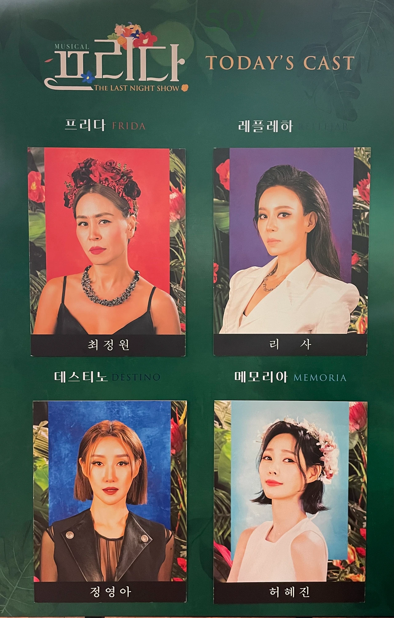 그리고 무대에 혼자 서서 연기하는 정원 프리다는 소름 끼치게 멋있었고, 프리다가 그때 느꼈을 고통이 관객에게 고스란히 전해졌다. 몸동작, 시선, 감정 뭐 하나 완벽하지 않은 게 없었다.