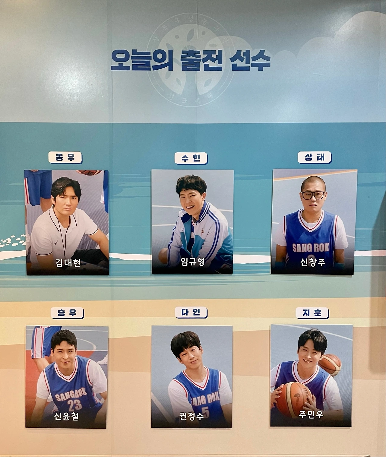 다른 농구팀 멤버들은 승우, 지훈, 다인 역할의 배우님들이며 유니폼에는 모두 배우의 본명이 적혀있다.