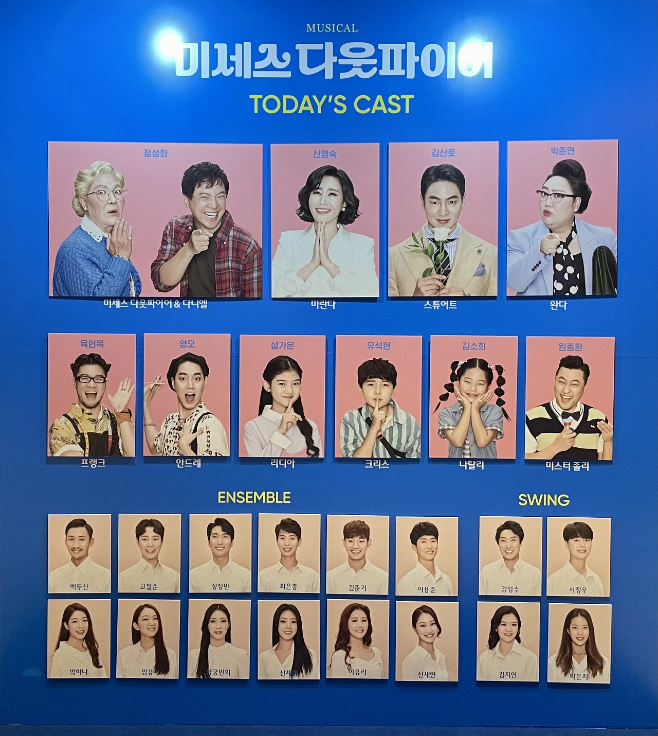 그리고 또 특이하게, 다니엘 역할의 배우님이 메이크업을 하나도 하지 않고 나온다. 그래서 되게 '다니엘스럽다'라고 막연히 생각했는데, 알고 보니 무대에서 바로 다웃파이어로 변장한다. 무대에서 약 40번 체인지를 하며 다니엘과 다웃파이어를 연기한다. 이러니 메이크업이 불가능할 수밖에-