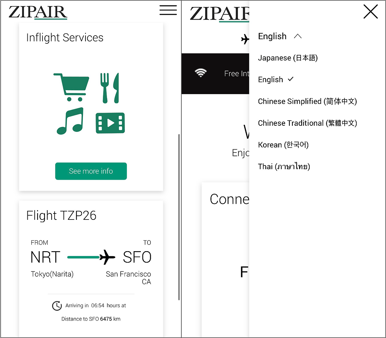 앞서 얘기했듯이, 좌석마다 부착된 QR 코드를 스캔하면 ZIPAIR 웹사이트로 이동한다.